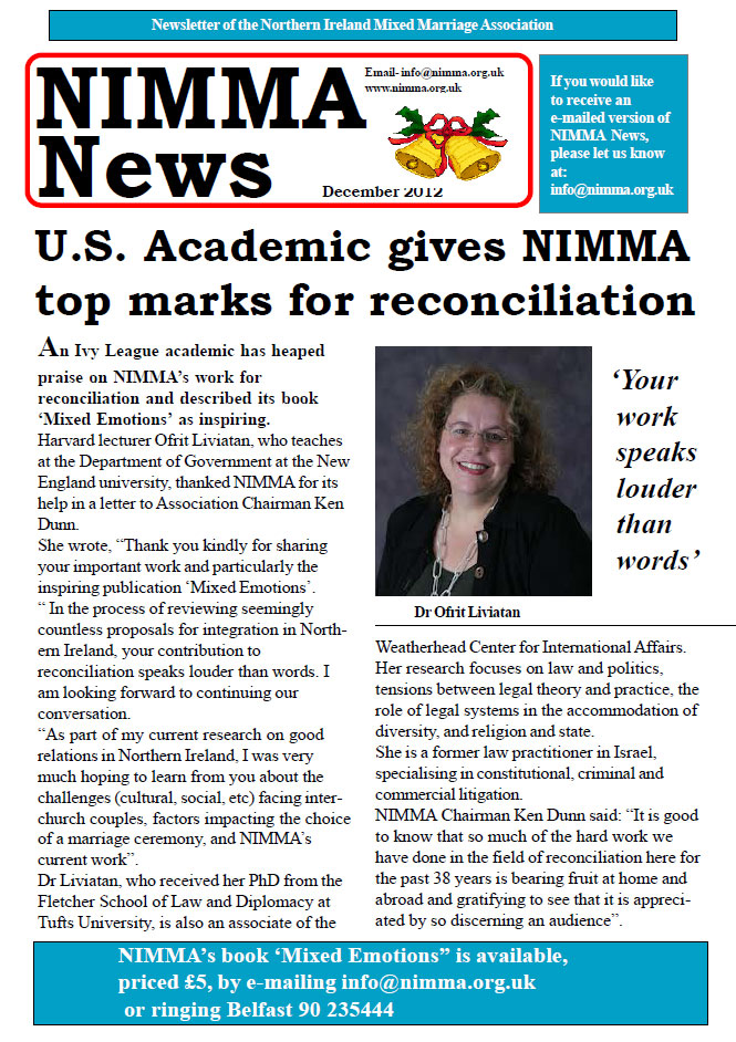 The toleration and compromise shown by couples in mixed marriages is a blueprint for Northern Ireland writes NIMMA Chair in the Belfast Telegraph, July 2013